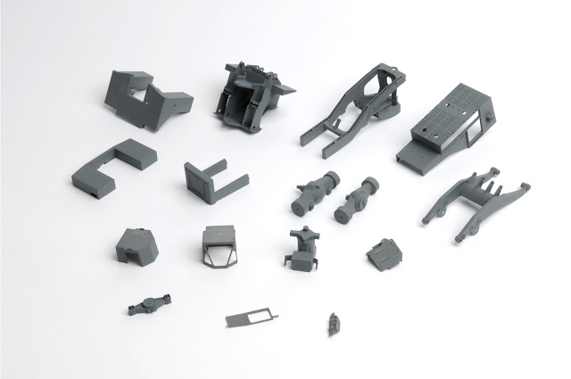 | The parts that make up the body of the 992C – all printed using our in-house SLA machine. |