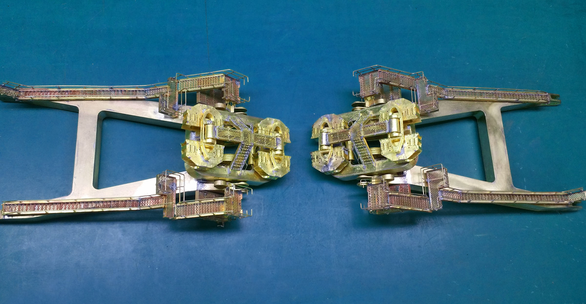 We recently received a sample of our latest upcoming brass model in 1:87 scale, the Bucyrus-Erie 1850-B ‘Brutus’, and after a trip to the photo booth, we couldn’t wait to share the results. Over 1,000 individual parts comprise the construction of this limited-edition model, which in turn requires over 40,000 soldered joints in order to complete the assembly. Each lower section of boom (pictured below) requires 1,034 solder joints!