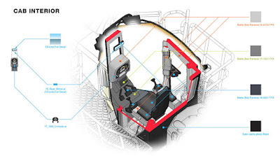 | A paint and Tampo guide provided to our manufacturer for our upcoming Cat 16M Motor Grader cab interior. |