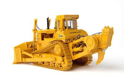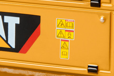 Model numbers, company logos, warning labels, and safety callouts—all are markings commonly seen on the real machines. For modern equipment, the placement and specifications for these are usually straightforward and easy to come by, as manufacturers such as Caterpillar have digital artwork that we can reduce to the proper scale.
