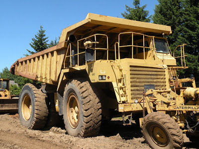 | A Cat 777 Haul Truck on location where we conducted our machine survey. Not many markings left on this one. |