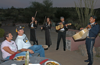 Climbing up, down, and round this jungle of giants in the intensifying sun stimulated an appetite that the Tinaja Hills staff cured with a large lunch including all the trimmings. Knowing what came next, the group made quick work of the meal.