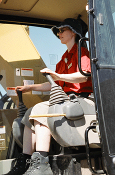 | Linda Jaquemet of Switzerland gets the hang of a 320 excavator. |