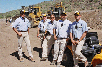 Soon seated in the grandstands overlooking an impressive dirt playground were 42 of the happiest Cat enthusiasts that ever lived. With a Mexican mountain range looming in the background, Mike Berry – Supervisor of Tinaja Hills Demonstration & Application Center – described the capabilities of more than 40 machines that rolled and rumbled by as the Tinaja operators executed eye-popping choreographed machine demonstrations. From 908 wheel loaders to 420 backhoes, the team of six flawlessly operated every piece of equipment. Just moments after a 777 Klein water truck with 20,000 gallons of very welcome dust suppressing water rolled by, a 785 mining truck with a 120 ton payload stopped from full speed within the length of the truck itself. More than one participant said this demonstration was impressive enough to be deemed the highlight of the action-packed day.
