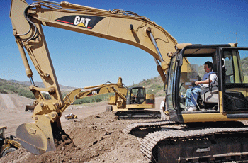 The group then flocked back to the demo grounds like children to the tree on Christmas morning. Awaiting them sat six of the biggest toys Santa ever squeezed down the chimney. Arranged in working groups were two excavators (a 320C and a 321C), two tractors (a D6R and a D6N) and two wheel loaders (a 924G & 930G). The carefully constructed schedule, another first for the Tinaja facility, ensured all participants ten minutes of stick time on each type of machine. Somehow, order prevailed over chaos despite the eagerness of everyone involved to have their turn. People took their places and four hours of pushing, digging and piling dirt ran its course without a hitch.