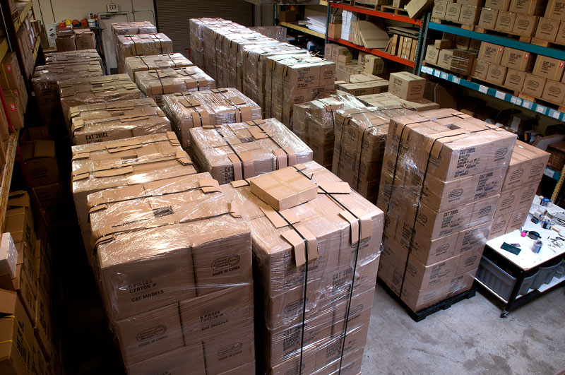 Since the 385s and 769Bs arrived last week, we’ve been extremely busy getting them out the door. Take a look at the progress we’ve made: the first picture shows the pallets of models the day they arrived, the second picture is as of today.