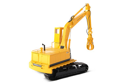 The Caterpillar 245 Excavator, produced from 1974 to 1988, was powered by the six cylinder turbocharged, 3406 engine with 325 flywheel horsepower. Due to its extreme versatility, this machine had many specialized versions created for specific uses. The grapple was one of the best examples of these modifications, used for a wide range of applications such as handling shredded scrap, long structural beams or car bodies, handling waste at recycling and transfer stations and handling rocks at construction sites. The four tines of the grapple were made of low-alloy steel with hardened tips. All pins, cylinders, bearings and hoses were hardened and armored for heavy duty use.