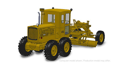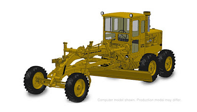 All the control linkages to the steering have been re-created, as well as the drives to the moldboard side shift rack. Cabin interior is accessed by the opening doors and all controls and gauges are visible. The highly detailed D318 pony motor can be viewed easily through the open sided engine compartment. In addition to the standard blade, our model also includes the optional V-type scarifier attachment. All of this detail sits upon realistic rubber tires. The No.12 has been finished with paint accurate to the period, and appropriate markings and safety labels.