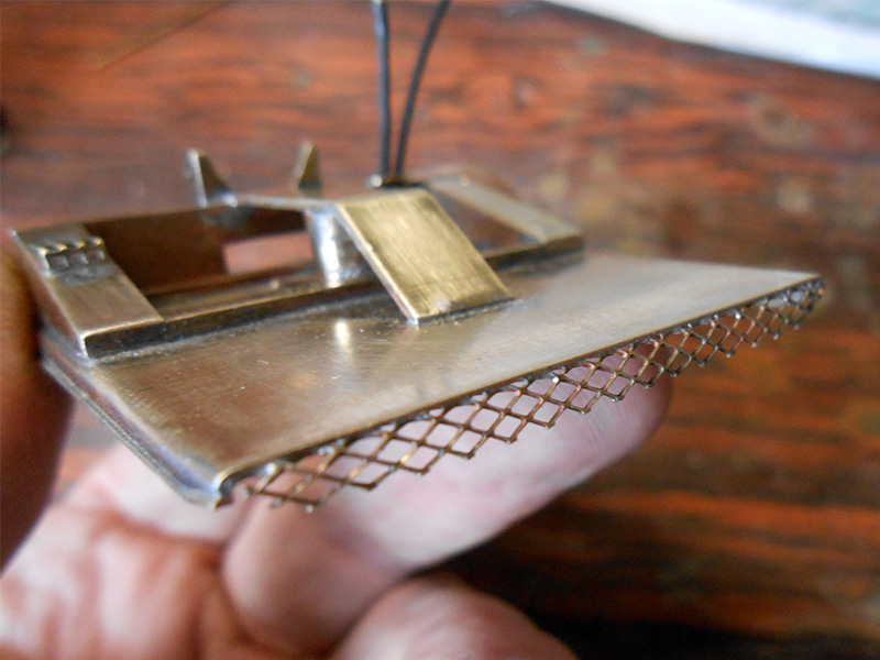 The BR172 Brushcutter attachment was made entirely from scratch out of brass as well. Each piece was cut, shaped, and assembled to match the real attachment down to the smallest of details including a feed-through plate for the hydraulic lines. The chains on the front and rear of the brushcutter were modeled using a very fine wire mesh as there was no way to replicate the chains at this scale.