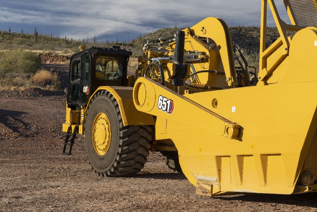 Caterpillar wheel-tractor scrapers are designed for high production hauling and are used for a broad range of materials. The machines are built in self-loading, push loaded or push pull systems. The 651 and 657 machines are the largest pull and push-pull scrapers in the Caterpillar open bowl scraper lineup and can be found moving material most commonly in construction and mining applications. At first glance the new Hex trade dress is the most apparent change to the new scrapers though Caterpillar has made numerous improvements to safety features, comfort, and machine performance.
