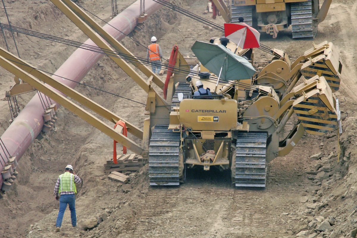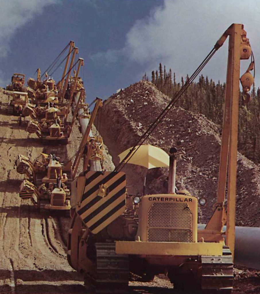 Functional pipelaying boom, hook and winches allow for a wide range of display positions while the individually linked, free-rolling wide gauge track pads wrapped around working track tensioners and idlers complete the rugged undercarriage. To finalize this configuration, a functional Cat 58 winch with hook has been attached to the rear of the machine.