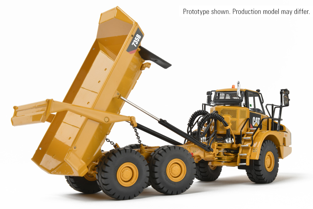 The highly anticipated 1:48 scale die-cast Cat® 735B Articulated Dump Truck has completed production and, after a final review and inspection of the models, has been loaded into a container and onto a boat to make the journey across the water. Barring complications in shipping or Customs, we hope to have these models at our warehouse around the middle of April, but we will keep you posted with more information as we have it here.