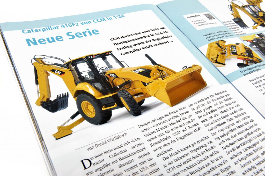 The first model in our new Contractor Collection Series, the 1:24 scale Cat® 416F2 Backhoe Loader, was featured in a detailed review in the first 2018 issue of Laster & Bagger (Trucks & Construction) Magazine. Many thanks to our friends at Laster & Bagger; it is always an honor to be featured in their magazine.