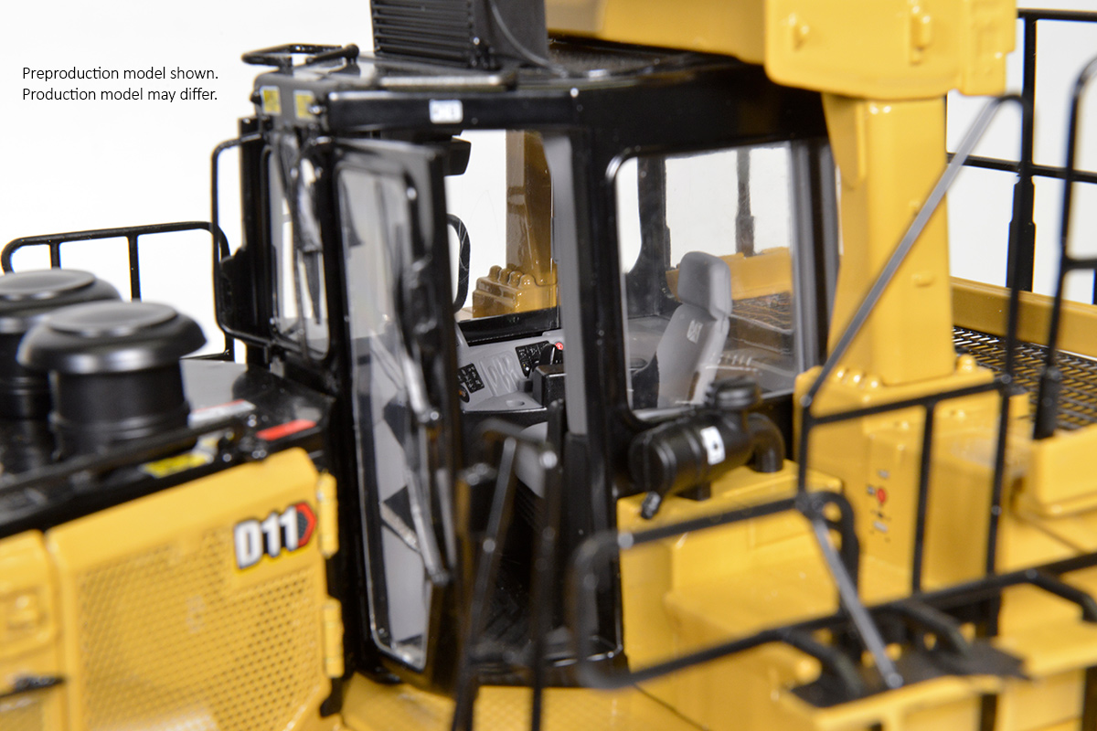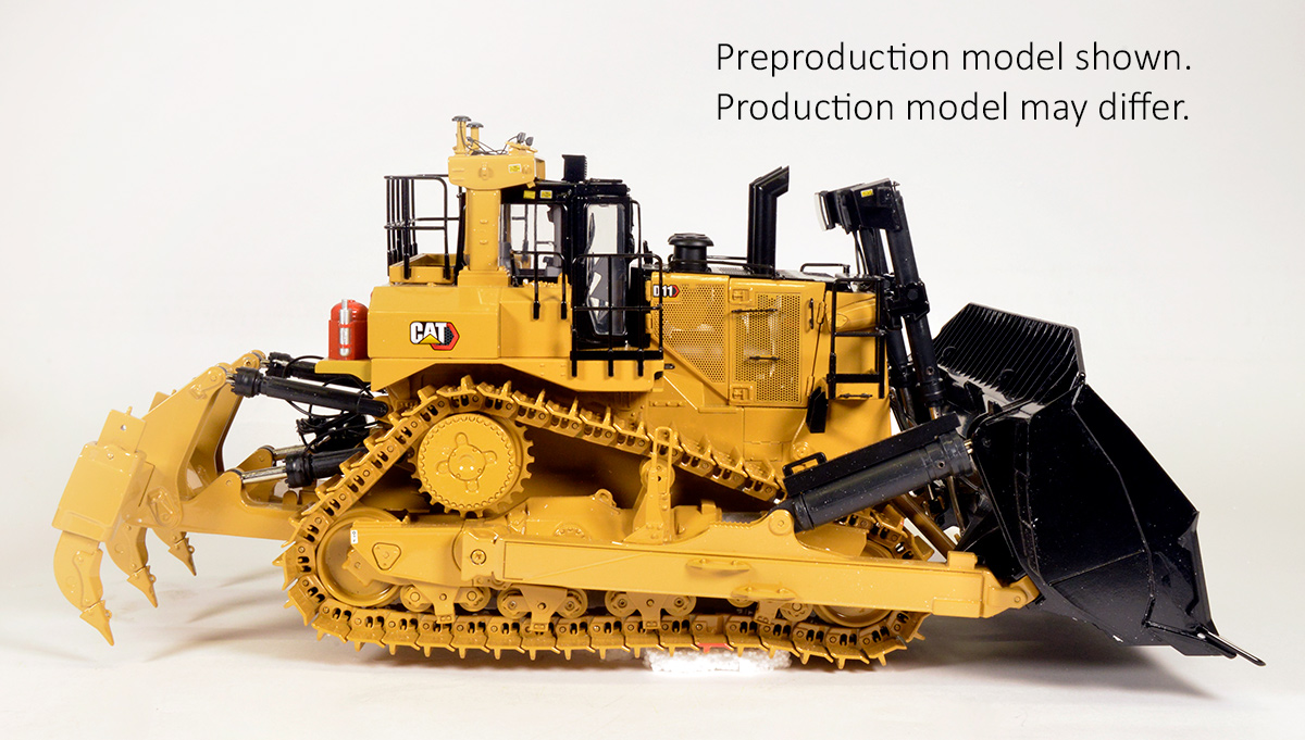 Introducing our newest model of the largest dozer in the Caterpillar® family to join the CCM collection of die-cast replicas, the D11 Carry Dozer with Multi-shank ripper in precision 1:24 scale. Standing at approximately 7.7″ at the top of the ROPS canopy, this impressive model reaches 18.1″ long and 11″ wide.