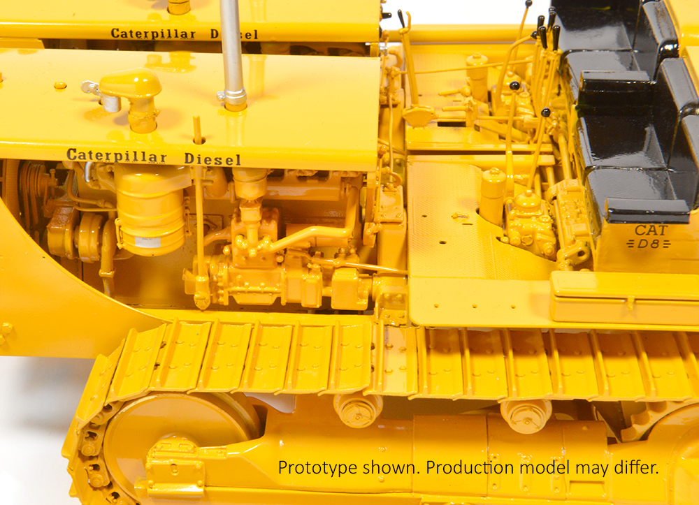 In the sense that a truly great model can be studied for hours and newly discovered details continue to impress, this model lives up to that expectation. Areas of exceptional detailing include the operator’s stations, complete with foot pedals and control levers for both tractors as well as an accurately depicted instrumentation panel. An open engine bay will reveal even more details to the observant as minute as fuel injectors, oil and fuel lines and pulley belts which adds to the realistic appearance.