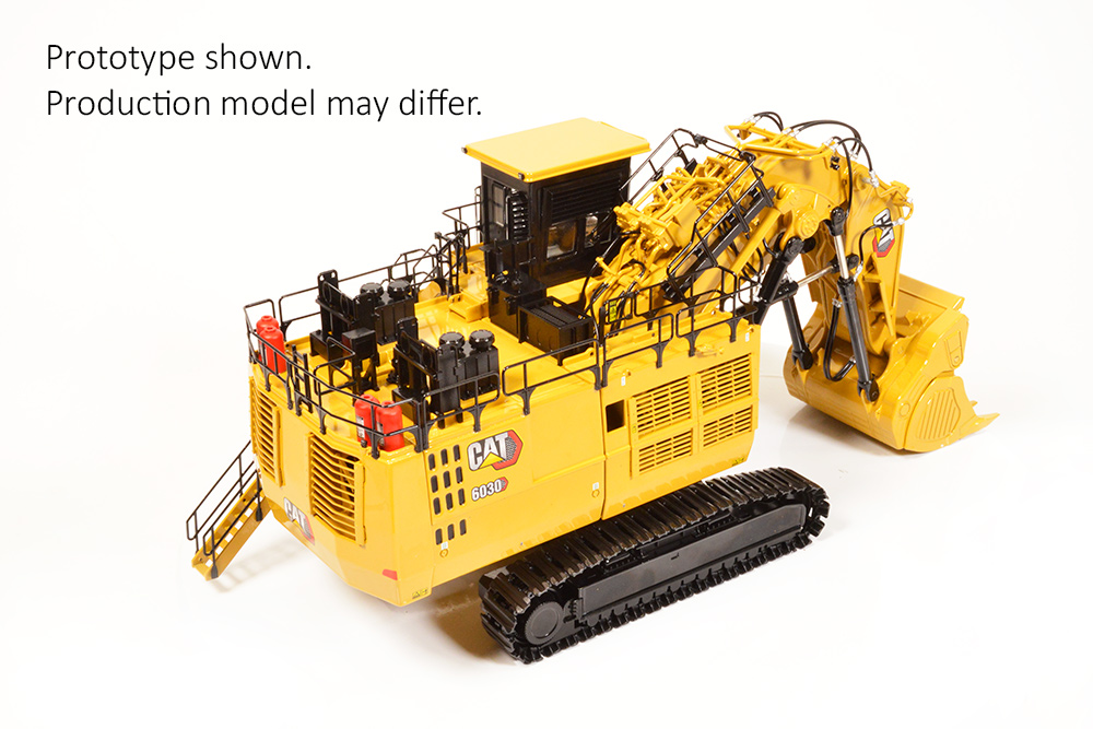 Presenting the Cat® 6030 Hydraulic Mining Shovel – Face Shovel in a limited edition, one-time production run from Classic Construction Models. Die-cast in highly accurate 1:48 scale, this model measures approximately 13.9″ long, 6.1″ wide, and 6.25″ tall. Noticeable features and areas of extensive detailing on the model include: