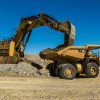 Introduced in 2013, the Cat® 6060FS Hydraulic Mining Shovel combines a shovel that not only produces more, but lasts longer, works harder, operates more efficiently, and delivers greater profitability. With it’s rated payload of 67 tons, it was the first shovel in the mining industry tailor-made for mines using 240 ton haul trucks, providing an efficient 4-pass solution to meet production capacity.