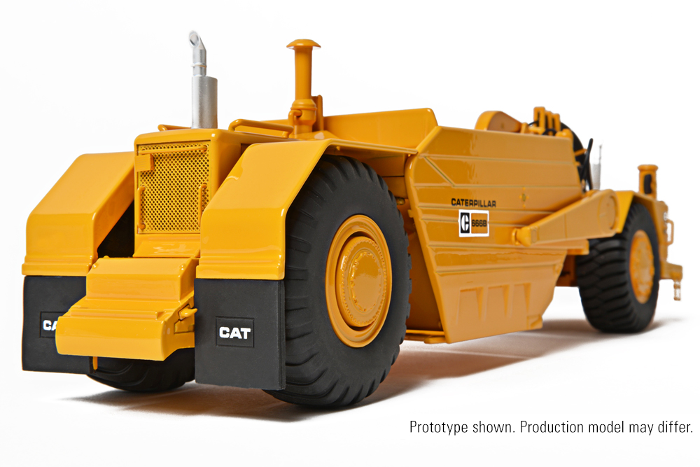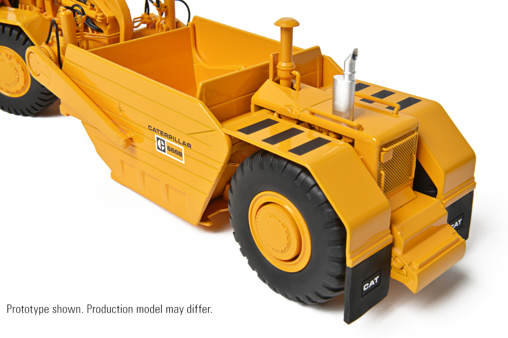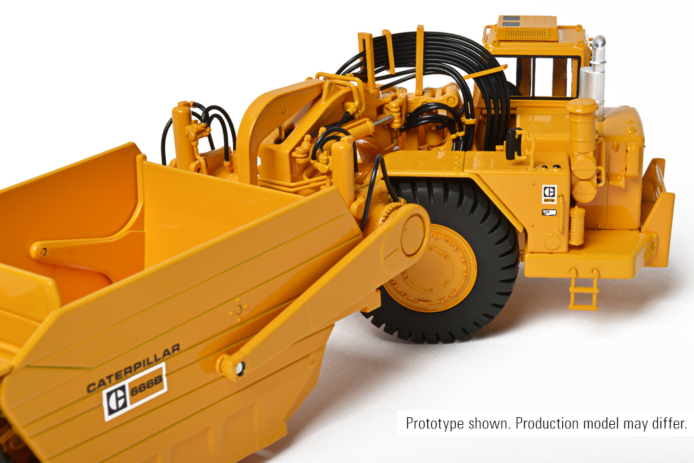 This combination provided customers with a coal hauling capacity in excess of 70-cubic-yards when heaped in its modified bowl. Changes to the rear 666 scraper unit included extended side panels, a taller front apron, a redesigned ejector, and full rear fenders making it ideal for handling the coal at high volumes. The first 657/666 Coal scraper was produced in 1967 and was continued in very limited numbers with 657B/666B models.
