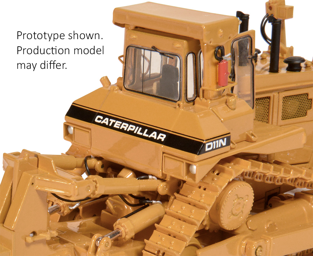 Introducing the newest model to join the CCM collection of die-cast replicas, the Cat® D11N in 1:48 scale. Measuring approximately 8.8″ long, 4.6″ wide, and 3.75″ tall, this configuration of the D11N is equipped with a fully articulated SU-Blade and Single-Shank Ripper. True to CCM style, extensive detailing and areas of note include: