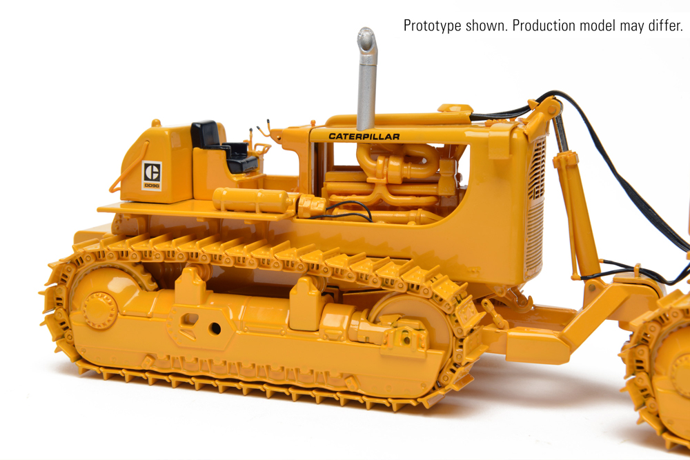 Joining the ranks of our ever-expanding collection of 1:48 scale, die-cast models is the Cat D9G Track-Type Tractor produced in 3 configurations. Standing at just over 2.25″ tall, 10.5″ long, and 2.5″ wide, this configuration features Dual D9 Tractors with a 9C Cushion Blade. Exceptional detailing on this model includes: