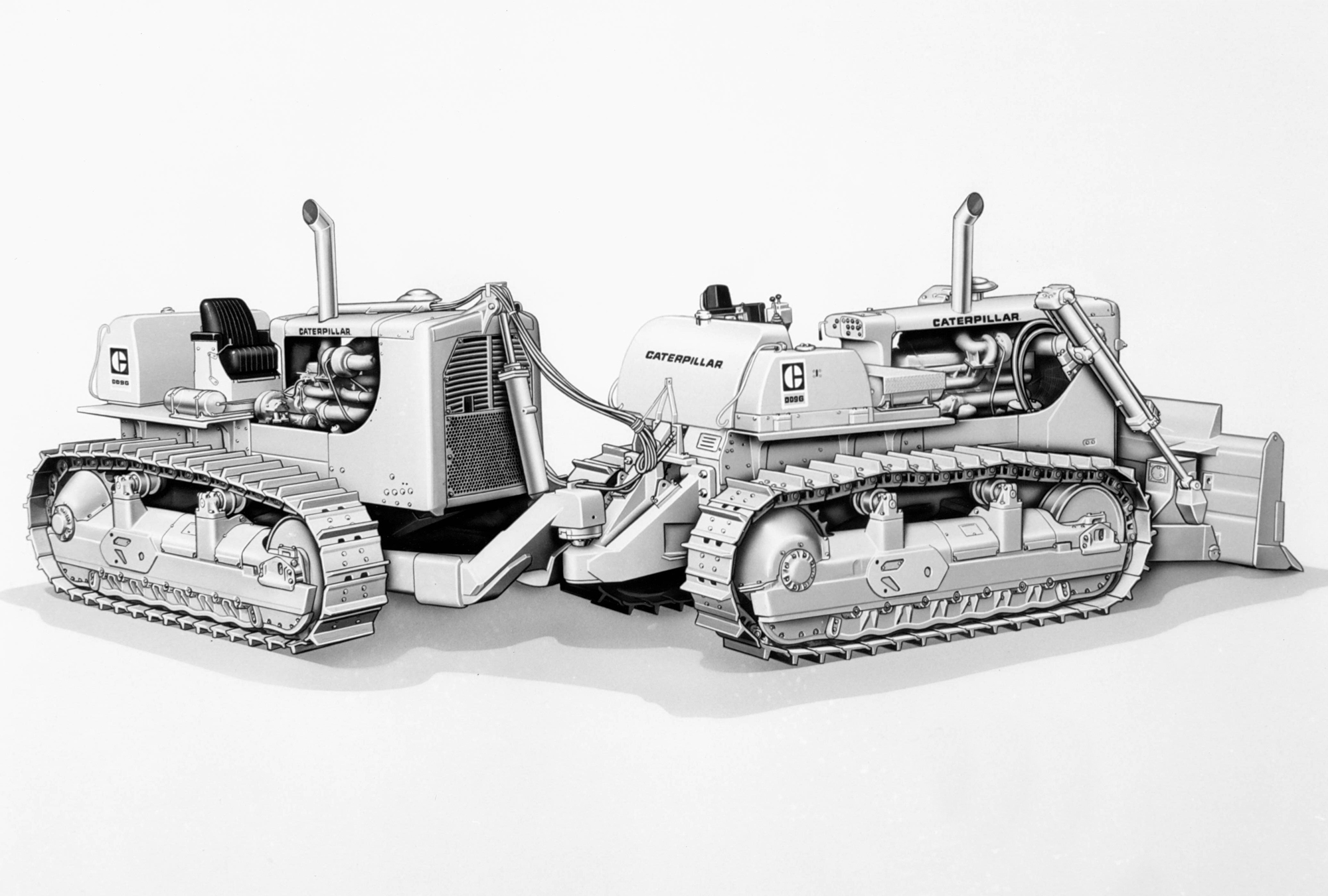 Introduced in 1961 as a replacement for the Cat® D9E, the D9G was the largest dozer produced at the time of it’s introduction. With a wide range of tools and attachments, the D9G was one of the most powerful, productive, and versatile machines in the Caterpillar® lineup. Some of the most notable uses of the D9G were for push-loading scrapers, although it could be equipped with rippers, one of several types of blades available, or configured as a DD9G with Dual D9 Tractors in tandem for use in a wide variety of applications where the full power of two tractors was needed.