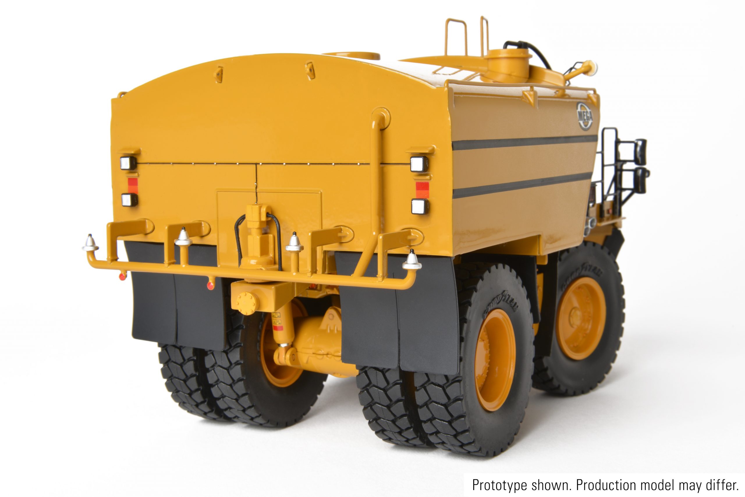 Our die-cast model of this machine will be based on the finely rendered details of our Cat 777G haul truck. In keeping with the design of the actual machine, our replica of the Mega MTT20 water tank will pin to the truck chassis. Other details that will be replicated on the model include the Mega water pump feeding the rear spray bar with 4 horizontal spray heads, the 2 vertical spray head valves mounted on top of the tank and the water cannon fed by an additional hose from the foam agent system reservoir embedded in the tank. A fill port safety grate, ladder and safety rails are among the other realistic details found on the model.