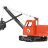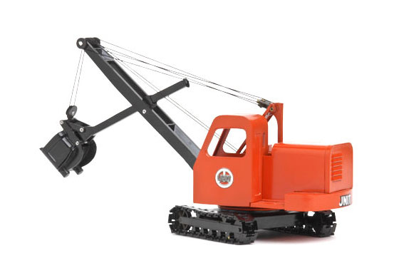 With individually linked tracks, a functioning 3” long boom and stick and working bucket door, this model looks ready to go to work. Manually operated hoists raise and lower the boom as well as adjust the stick position. A “Unit Orange” finish and authentic markings complete this model.