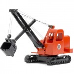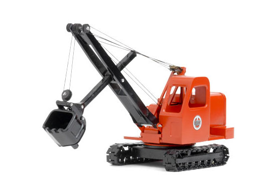 With individually linked tracks, a functioning 3” long boom and stick and working bucket door, this model looks ready to go to work. Manually operated hoists raise and lower the boom as well as adjust the stick position. A “Unit Orange” finish and authentic markings complete this model.