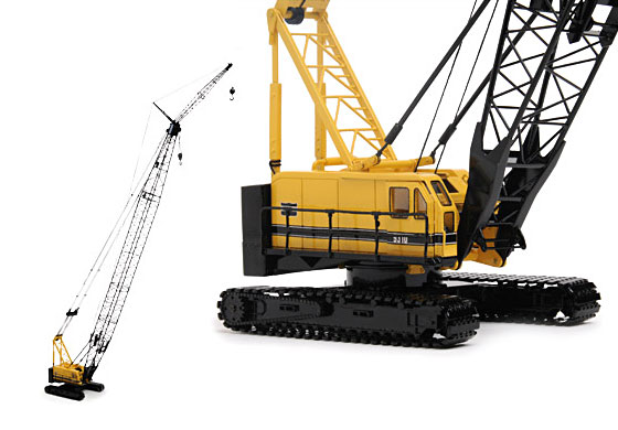 Hand built entirely of brass, each of our models features individually linked tracks, two working hoist drums, a detailed operator’s cab and full 360 degree rotation. Each model is provided with 150 feet of scale boom and a 45 foot scale jib. With the use of a turn-key the boom and load block can be raised and lowered.
