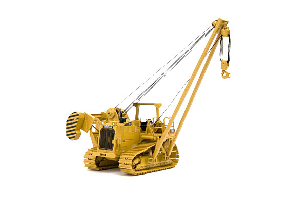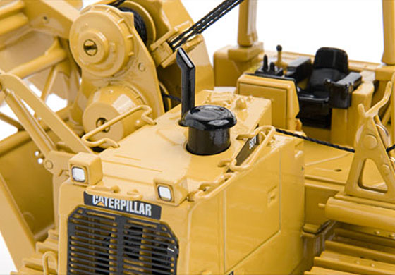 Our 1:48 scale die-cast 587T pipe-layer has a high level of detail, including individually linked, spring tensioned, all metal tracks, functioning boom and load block winches and a detailed operators station. It’s hard to believe the model includes features like the hydraulic motor driving the engine fan that can be seen behind the front grill, bolt heads on the tracks and even markings on the gauges for the operator. Even though it doesn’t tip the scales at 117,000 lbs. like the real machine we don’t think there will be any argument that this model is a true heavyweight champion.