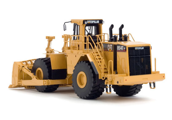 Our Cat 854G continues the tradition of legendary models from CCM. At 1:87 scale, the model measures approximately six inches long and two and a half inches tall. This model includes details as distinctive as a fully articulating blade that raises, lowers, tilts and tips, free-rolling rubber tires with accurate tread pattern, a distinctive roading fender package and precise rails, lights and ladders. Carefully inspected for accuracy by Caterpillar engineers for the real machine, this model will compliment the finest of collections and will be at home on any discriminating collectors’ display shelf, train layout or desk.