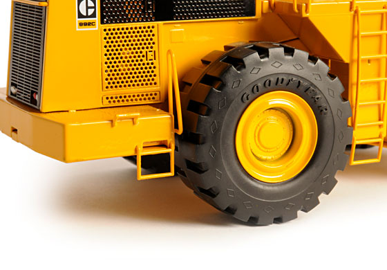 We have re-created the legendary Cat 992C with realistic steering, articulated pistons, Z-bar linkage, dump bucket, and a host of fine details. Paint and markings are approved by the manufacturer for accuracy. Includes a signed and serial-numbered spec brochure reproduction.
