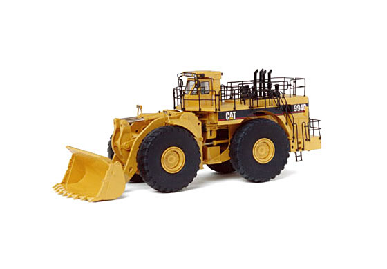 Each Cat 994D Wheel Loader model is fully articulated, and features a detailed engine compartment, along with a working bucket and a fully equipped operator’s cab. Z-bar loader linkage, accurate power train components, hydraulic lines, bucket wear plates, roll over protection, rubber tires, ladders and guard rails, as well as intake and exhaust stacks are accurately recreated. The model is reviewed and authenticated by the Cat project engineers who create the real machine.