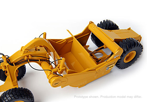 Our 1:48 scale, die-cast model of the Cat D9L is a true representation of the actual machine. To capture as much detail of the original as possible, it features individually linked metal tracks with tensioners, articulated hitch, detailed cab interior and accurate markings. The 631E scraper has piston actuated bowl, apron, and ejector; full operator’s cab; opening engine access panel; and accurate hydraulic lines and safety rails.