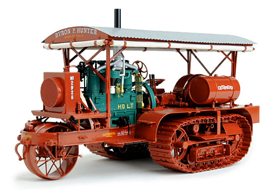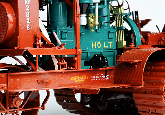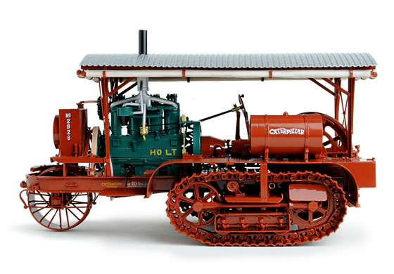 The first commercially successful track-type tractor was designed and built by Benjamin Holt in 1904. Supported by an endless track of wood and steel, Holt called his invention a “Caterpillar” and the name stuck. The Holt 75 was equipped with a 4 cylinder gas engine that produced over 70 hp. That power, combined with its ability to negotiate difficult ground conditions, meant it quickly replaced the horse and ox as the primary sources of motive power. Easily out performing round-wheel tractors, it forever changed the face of farming, logging, construction and even warfare. Don Hunter of California’s fully restored machine served as inspiration and primary reference for our model.