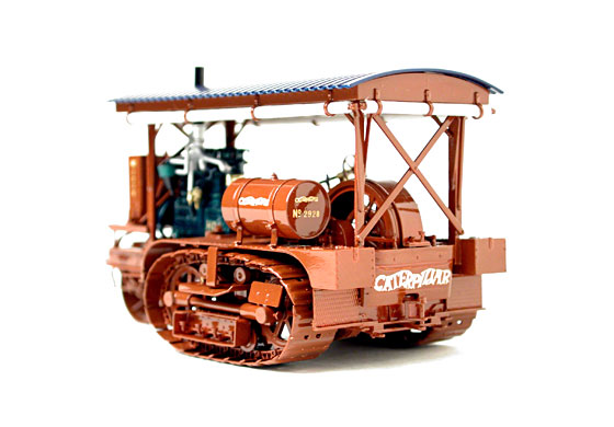 The first commercially successful track-type tractor was designed and built by Benjamin Holt in 1904. Supported by an endless track of wood and steel, Holt called his invention a “Caterpillar” and the name stuck. The Holt 75 was equipped with a 4 cylinder gas engine that produced over 70 hp. That power, combined with its ability to negotiate difficult ground conditions, meant it quickly replaced the horse and ox as the primary sources of motive power. Easily out performing round-wheel tractors, it forever changed the face of farming, logging, construction and even warfare. Don Hunter of California’s fully restored machine served as inspiration and primary reference for our model.