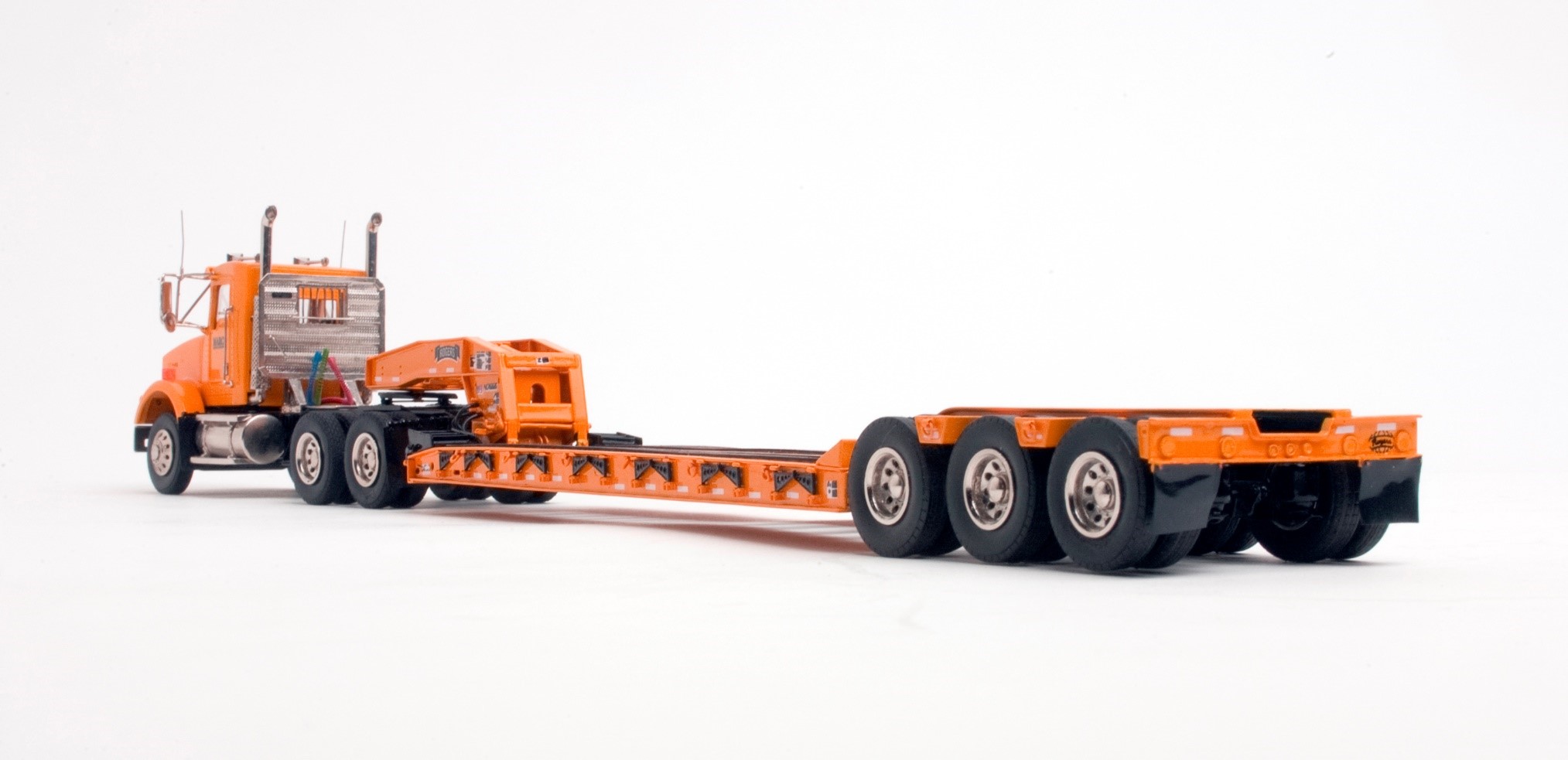 “Awesome model. Just got mine off ebay today. All I can say is, amazing. It looks good with the Trailking trailer and Rogers Tag 21 trailer with the D4C. Also the T-800 with Rogers lowboy looks amazing with the 320CLU.”