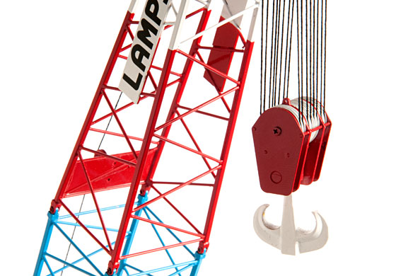 We have crafted our model of this wonder with all the accurate rigging and details of the real thing. As with all of our crane models, all features can be positioned and articulated like parts of the actual machine. The 1:87 scale Lampson 4600 is a true collector’s item for enthusiasts of heavy lift construction equipment.