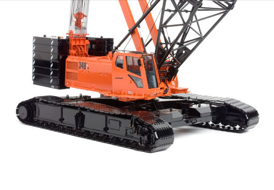 Created in a strictly limited, one time edition, each of these cranes is hand crafted from hundreds of individually investment cast, etched and formed brass components. The design of Link-Belt’s newest 300 ton crane has been replicated with the precise details that have made CCM world renowned. The 348 H5 model crane is equipped with 110’ of scale boom, a fully detailed engine, free rolling tracks, working track tensioners, a 4-way positionable cab and a working access panel that reveals a storage compartment and hydraulic filter. Folding steps on the track frames and a working safety latch on the hook are just some of the other incredible details to be found on this model. A total of 45 models were painted, with permission, in Dielco Crane orange body and black boom, crawler and counterweight color scheme with correct Dielco logo’s and markings.