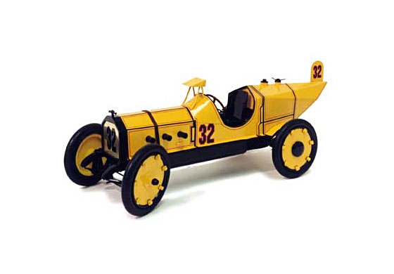 The Marmon Wasp, driven by Ray Harroun, was the winner of the first Indianapolis 500 auto race in 1911. The race was completed in 6 hours, 42 minutes and 8 seconds. This unique vehicle was made by the Marmon Motor Car Company, for which Harroun worked as an engineer. It was powered by a six-cylinder engine constructed from three stock Marmon two-cylinder blocks. The wasp also featured the black and yellow paint scheme that earned its name, and a rear-view mirror, which was new to automobiles at the time and designed by Ray Harroun. In 1961 the car got an anniversary lap at the 50th Indy 500 in 1961 by a proud Harroun himself.