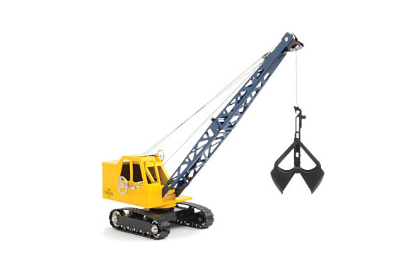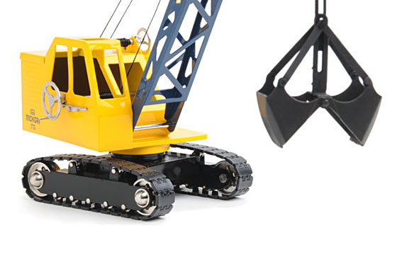 This CCM Model Toy, a Michigan C-24 crawler crane, was created by duplicating the style and detail of the Ny-lint T-24 truck mount toy crane and the real Michigan track mounted machine. The track frames and rubber tracks are modeled to look like they could been produced in the same toy factory as the Ny-lints in the mid-50’s. As is true with our truck mount version of this toy, the winches and clamshell bucket work just like the original toy versions and the rubber tracks roll easily. This brass model replicates the original toy while remaining true to the design of the real machine which means it’s a perfect addition to any toy or construction model collection.