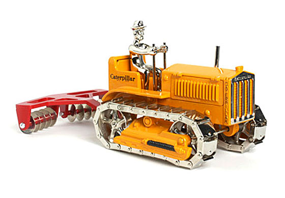 Our ten-disc harrow was specially designed to fit on our cast iron Caterpillar tractors. Hand crafted with chrome plated discs, it’s the perfect accessory for either of our cast iron tractors. Patterned after the real ones that were used to prepare plowed ground for planting, it looks ready to go to work. This toy is designed to be installed without tools or modifications to the tractor.