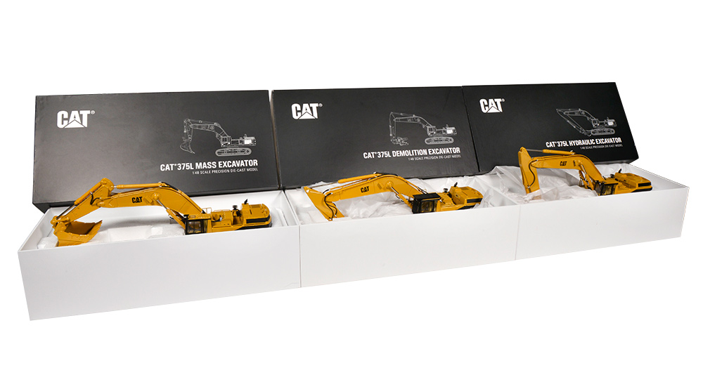 After an uneventful trip across the ocean and no delays in Customs, we are pleased to announce the Cat® 375L in 1:48 precision scale die-cast has been delivered to our warehouse. A thorough review of these models has been completed, both by CCM and Caterpillar®, and these models have been cleared for shipment.