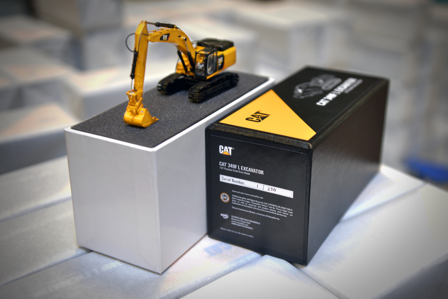 A shipment recently arrived at our warehouse filled with 1:87 scale brass Cat® 349F L Hydraulic Excavators! After quickly unsealing and unloading the shipment, we set to work sorting these incredible models and they are now ready to ship out.